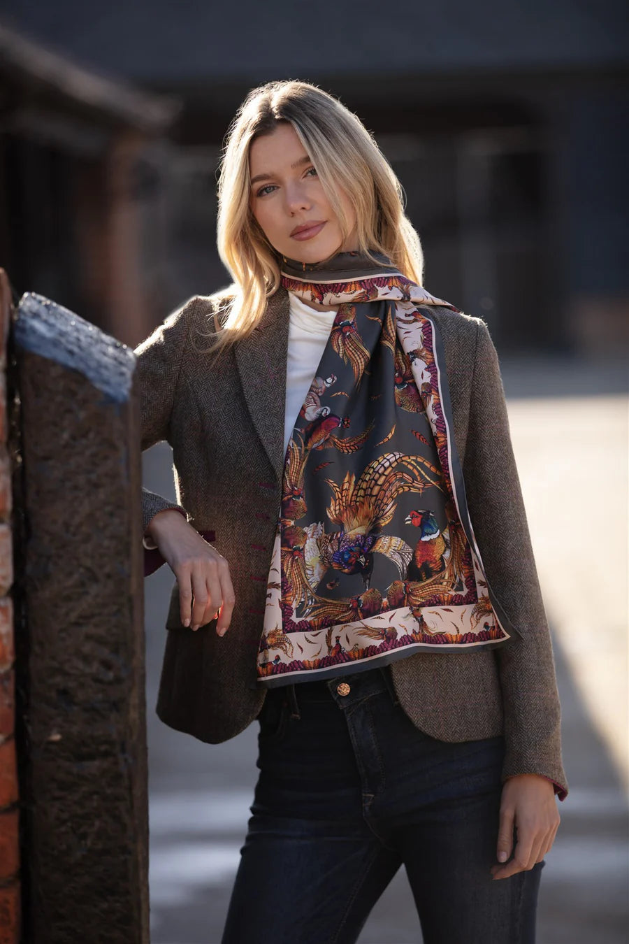 Clare Haggas George & Friends Charcoal Classic Pure Silk Scarf