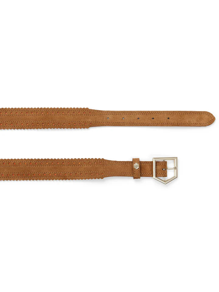 Handcrafted in Portugal, from soft sustainably sourced suede, we’ve added a shiny light gold chevron buckle and tonal stitching, to ensure this waist belt has all the detail you expect from our brand .
