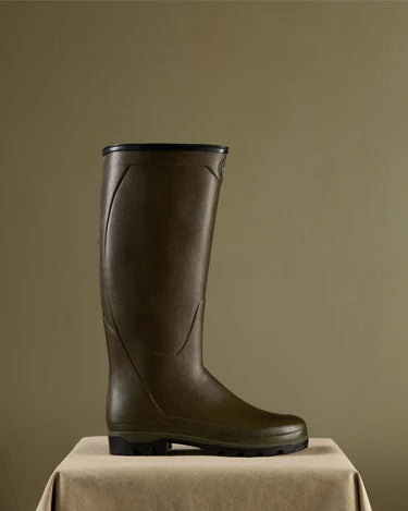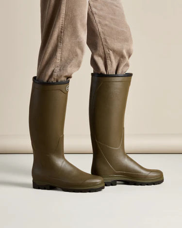 The Country Cross boot is built for everyday wear. Handcrafted from our signature Chamolux natural rubber, it has a wider, sporting calf for a more generous fit around the leg. Every boot is rigorously tested to ensure it is 100% waterproof. A shock absorbing dual-density Cross outsole ensures it is suitable for all terrains. The neoprene lining ensures this boot keeps feet warm between temperatures of -15 and 0ยฐc.