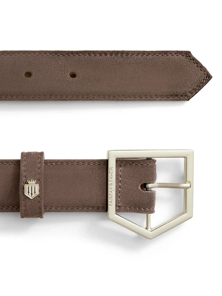 Handcrafted in Portugal, in thick, high quality bombé suede, attention to detail includes shiny light gold hardware and our iconic gold and navy enamel shield logo, so you can relax knowing that this belt will be the perfect finishing touch to any outfit .