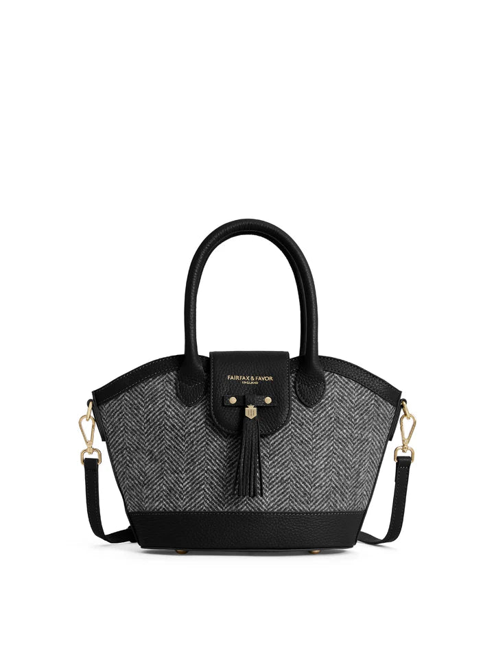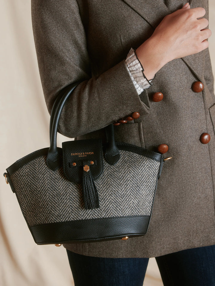 Our much-loved icon has been given a stylish winter look. The Mini Windsor Herringbone Tote bag delivers all the same design details, including a detachable shoulder strap so you have a choice of wearing it over your arm, your shoulder or across your body – this time in our pure wool herringbone fabric with a refined leather trim.