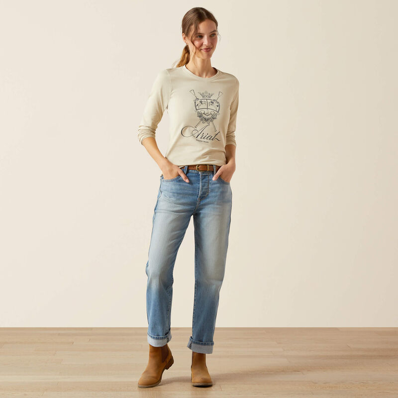 Crafted from a soft organic cotton blend that stretches for a flattering fit, this sophisticated take on an everyday staple has equestrian-inspired graphics that will stand out at the yard and beyond.